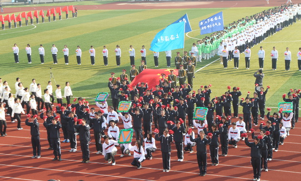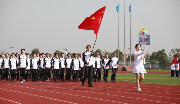 11月11日上午八点半,秋高气爽,阳光明媚,2010年上海海洋大学“红双喜杯”运动会在校田径场隆重开幕。校党委书记虞丽娟宣布运动会开幕,潘迎捷校长致辞,程裕东副校长主持开幕式,校领导吴嘉敏、黄晞建、封金章、顾乃达,校长助理吴建农及全校师生参加了开幕式。