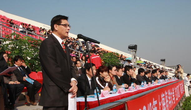 潘校长在讲话中指出,体育活动是大学校园生活的一个重要组成部分,也是锻炼学生体质、培养体育精神的一个重要载体。在海大98年的光辉历史上,蓬勃开展的体育运动始终是学校的一个优良传统,龙舟队、赛艇队、游泳队、水球队也曾经是学校的骄傲。在学校98华诞晚会上,我校老校友、原赛艇队队长陈士麟先生向我校赛艇队赠送船桨,并勉励赛艇队重振雄风走向辉煌,这不仅是老队长对年轻队员的嘱托,更是老水大精神在新海大中的传承。潘校长还指出,学校整体搬迁到临港以来,一直十分重视开展体育运动,立志要为广大师生员工营造一个更好的开展体育运动的环境,各种体育设施和场所会不断完善。他还强调,此次运动会的比赛是暂时的,成绩也是次要的,但是拼搏向上、永远争先的体育精神是我们需要的,这种精神不仅是体现在运动会上,更要融入到学校发展的大舞台上,要借助这一盛会,推动学校事业更加兴旺发达。