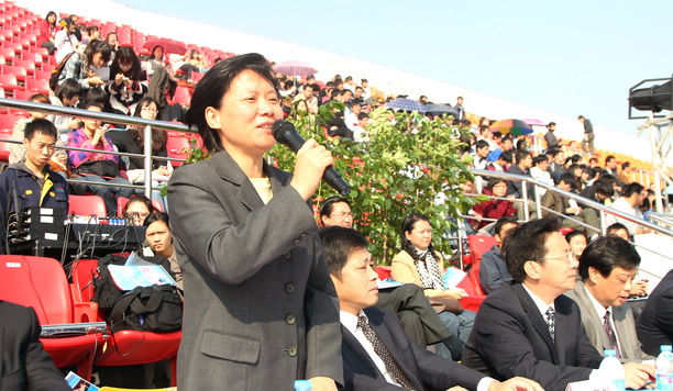 校党委书记虞丽娟宣布运动会开幕(胡崇仪 摄影)
