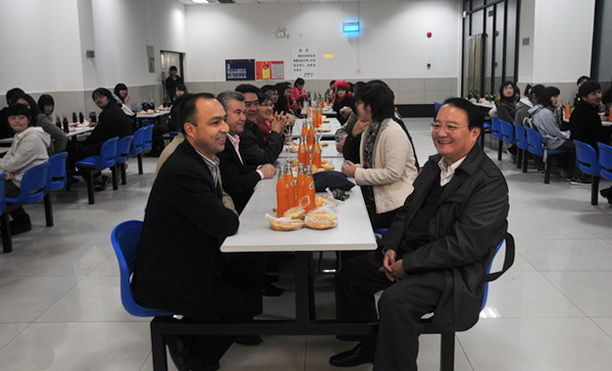 11月17日,学校清真餐厅洋溢着节日的欢乐,校长潘迎捷、校党委副书记、副校长黄晞建与在校的少数民族学生、留学生一起庆祝节日并与他们共进晚餐。校领导亲切询问了学生们的学习、生活和家庭情况,表达了对他们的关心和关怀。校办主任张敏、后勤管理处处长俞渊、后勤服务中心总经理王国华及学生处、各学院学生工作负责人、辅导员等参加了活动。