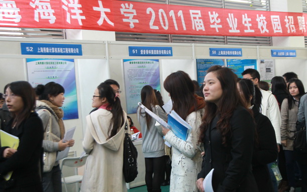 经过近一个月的积极筹办,11月25日,上海海洋大学2011届毕业生校园招聘会于体育馆一楼网球馆隆重举行。本次招聘会到场的有农工商超市(集团)有限公司、上海百事可乐饮料有限公司、上海克莉丝汀食品有限公司、上海市邮政公司、上海第一冷冻机厂有限公司、农工商超市(集团)有限公司、花旗银行(中国)有限公司、乐百氏(广东)食品饮料有限公司上海分公司、沃尔玛(中国)投资有限公司、伊利集团上海分公司等多家知名企业,此外上海水产科技园、上海张江高科技园区也携园区的部分企业来校招聘毕业生。此次到场的招聘单位多达213家,提供的招聘岗位超过4000个,覆盖我校40多个专业。