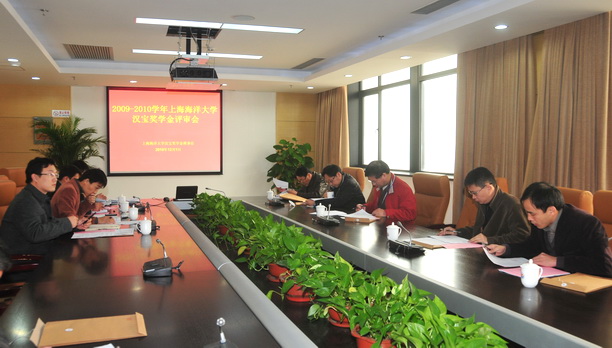日前,2009-2010学年上海海洋大学汉宝奖学金评审会在行政楼706会议室召开。校长助理吴建农、汉宝集团上海汉宝生物工程有限公司总经理蔡雪峰等汉宝奖学金理事会成员出席了本次会议。