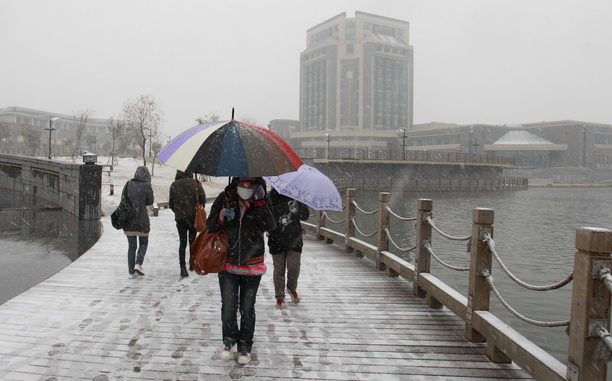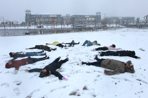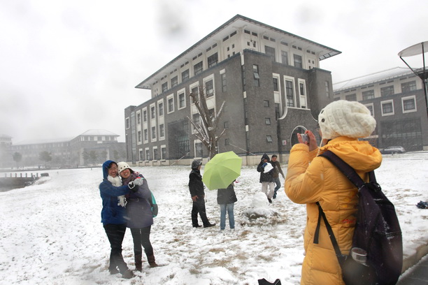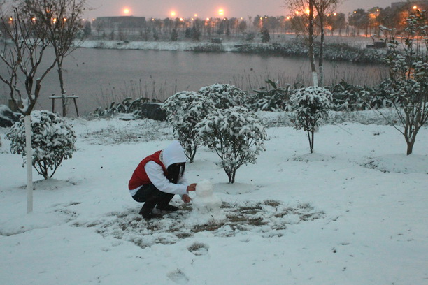 突来的罕见降雪也给同学们带来了欢乐,同学们纷纷来到户外体验雪趣雪乐。不少同学在校园里照相留念,更多童心未泯的学子则在空地上玩起了游戏,有打雪仗的、有堆雪人的,玩得不亦乐乎。