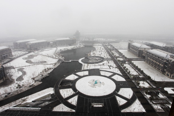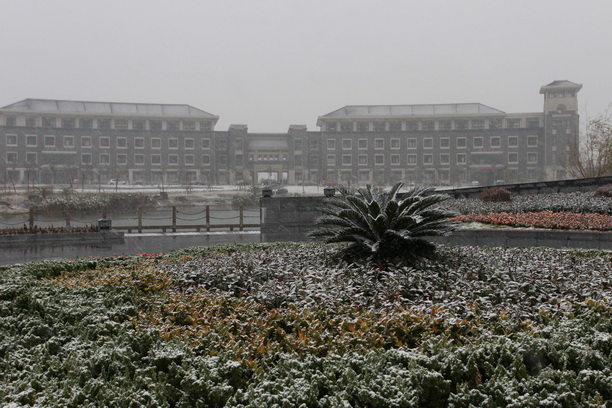 12月15日下午,海大新校区喜迎搬迁后的第一场大雪。雪花纷纷扬扬飘个不停,把整个校园装扮得银装素裹、分外妖娆。