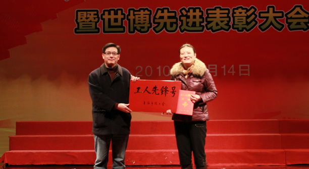 虞丽娟书记为市级世博先进个人获奖者颁奖(于光磊 摄影)