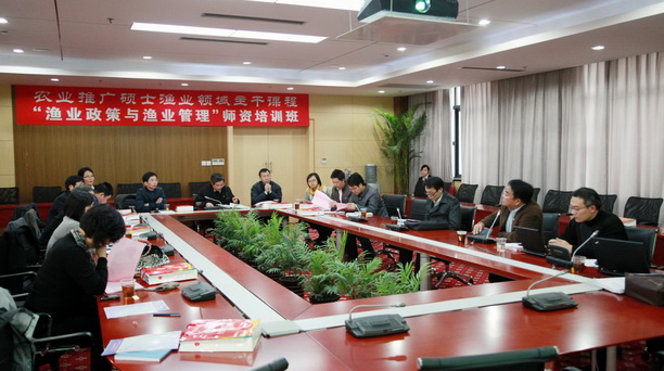 12月18日,农业推广硕士渔业领域主干课程“渔业政策与渔业管理”师资培训班在我校拉开帷幕。本次师资培训为期两天,由农业推广硕士渔业领域培养协作组主办,我校研究生部负责承办。来自大连海洋大学、广东海洋大学、广西大学、河北农业大学、湖南农业大学、华中农业大学、集美大学、南京农业大学、宁波大学、西南大学、浙江海洋学院、中国海洋大学及我校等十三家单位的20余位教师参加了培训。