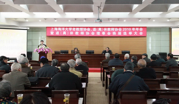 2010年12月14日上海海洋大学退(离)休教师协会、老教授协会在军工路校区培训中心召开2010年年会,暨上海海洋大学退(离)休教师协会理事会换届选举大会。140名两会会员出席会议,潘迎捷校长、校党政机关及各学院负责人也出席会议。
