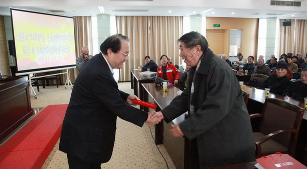 老教授协会理事长,退(离)休教师协会副理事长乐美龙教授宣读两个协会首次选出的老年工作积极分子(按姓氏笔画排序):王锡昌、史济奎、朱家彦 、何其渝、汪之和上、林雅年、周以俭、杨德厚、季恩溢、郑卫东、赵玲、张登沥、葛茂泉等14名教师,由潘校长发给证书。