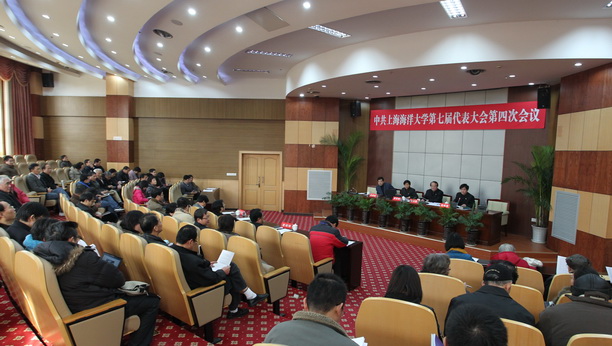 12月28日下午,中共上海海洋大学第七届代表大会第四次会议在行政楼137会议室召开,来自各个层面的100多名党代表参加了会议,会议由校党委副书记、副校长黄晞建主持。