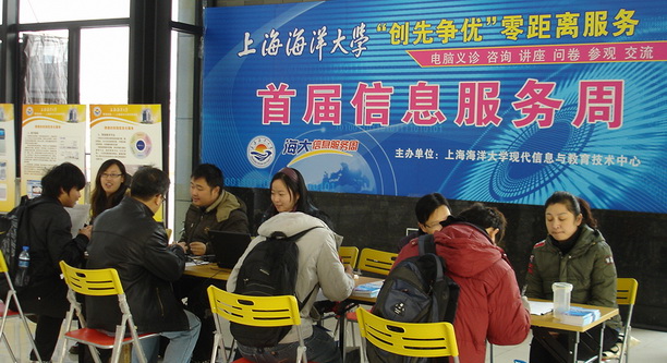 信息服务周上现教中心老师接受学生咨询