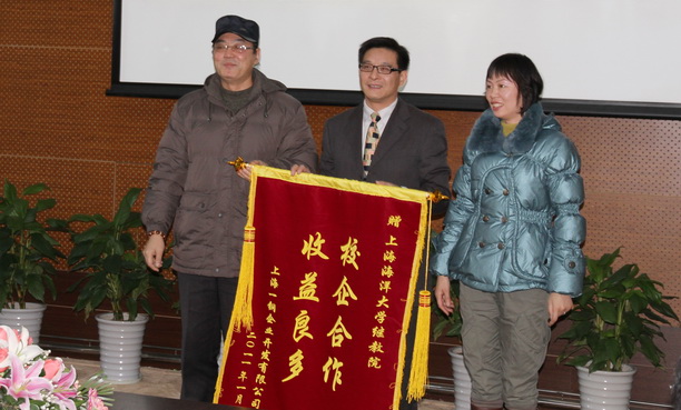 最后,宝钢培训部的领导向我校捐赠锦旗以示感谢。
