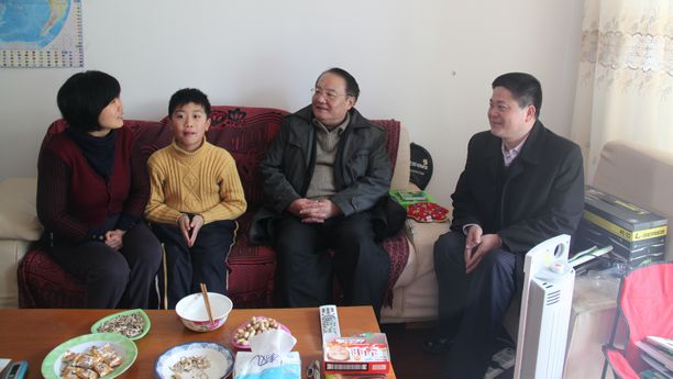 潘校长还来到校后勤管理处俞渊处长家中。春节前,俞处长母亲因病住院,他白天在学校坚持上班,晚上需要值守照顾,俞老师奔走于学校和医院之间,而手头的工作一点也没落下。潘校长亲切看望了俞处长母亲,祝愿老人早日康复,称赞老人家培养了一位有孝心、又爱岗敬业的好儿子。窗外的阳光带给室内绵绵的暖意,暖人的话语更暖人心。