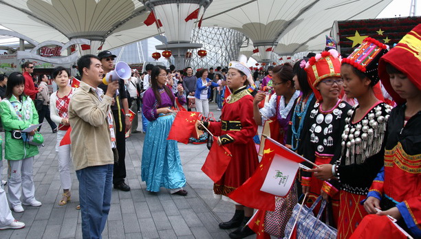 张雅林老师在世博园组织拍摄志愿者MTV