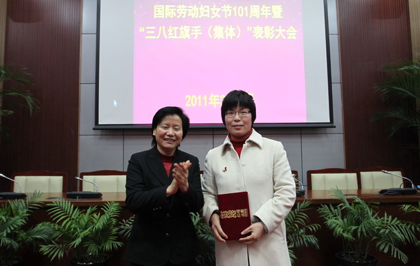 3月7日上午,我校隆重举行纪念“三八”国际劳动妇女节101周年暨三八红旗手(集体)表彰大会。校党委书记虞丽娟、副书记吴嘉敏、部分学院(直属部门)党委(支部)书记、三八红旗手个人和集体以及部分女教工代表出席了大会。妇工委主任杨红主持会议。