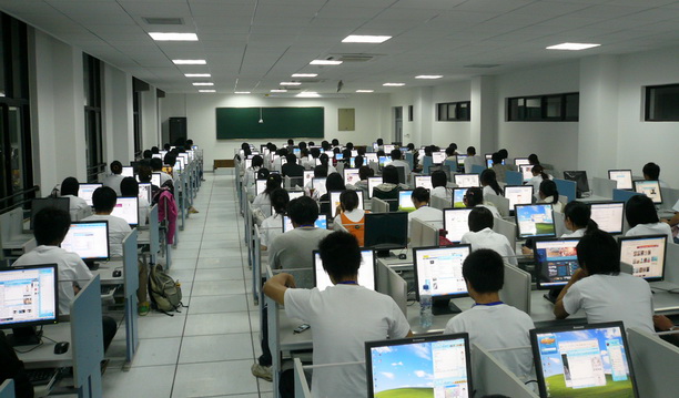 为保障教学工作的顺利开展,全校建有公共机房8间,座位数800个,全部采用双核计算机配置;外语语音室8间,座位数530个。教学楼所有教室均为多媒体教室,全部连网,并全区域覆盖无线网络。