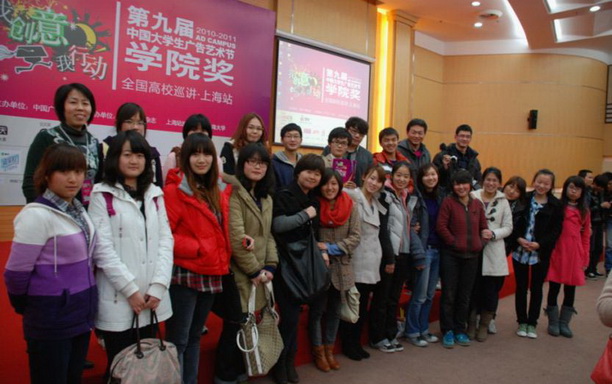 3月11日第九届中国大学生广告艺术节学院奖大赛·全国高校巡讲会第一站在上海大学隆重举行。为使参赛队员了解详细的企业命题信息,经管学院营销系老师带领参赛团队参加了这次企业巡讲会。