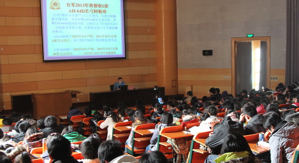 赵教授给同学们上了一堂生动的军事国防课、一堂爱国主义教育课。精彩的报告让同学们了解到当下最热点及最前沿的军事问题,并让同学们了解工作职责所在、团队精神、国家发展等。同学们纷纷表示报告十分精彩,受益匪浅,将以自己的刻苦学习从基础做起,从小事做起。