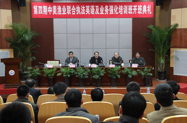 3月28 日上午,由农业部渔政指挥中心主办、我校承办的第四期中美洋渔业联合执法培训班开班典礼在我校隆重举行。农业部渔政指挥中心胡学东副主任、东海区渔政局张秋华副局长、我校潘迎捷校长、海洋科学学院许柳雄院长出席了开班典礼。