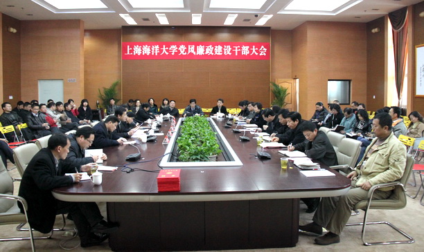 3月25日下午,上海海洋大学2011年党风廉政干部大会在图文信息中心102会议室举行。会议传达了中纪委、上海市纪委的六次全会和市2011年教卫系统党风廉政建设干部大会精神,对今年党风廉政建设的各项工作任务进行部署,校党委书记虞丽娟代表校党委对反腐倡廉工作推进提出指导意见,校长潘迎捷主持会议,党委副书记、纪委书记吴嘉敏作工作报告。全体在校领导、中层干部、校纪委委员,廉政督导员、重点部门重点岗位工作人员、及部分党代表、各民主党派主委近百人与会。