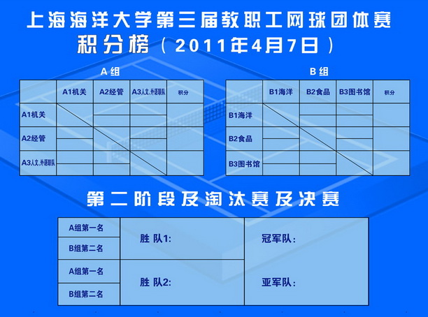 兹定于4月7日下午在校室内网球场举行上海海洋大学第三届“申海杯”教职工网球团体比赛。具体赛程安排如下: