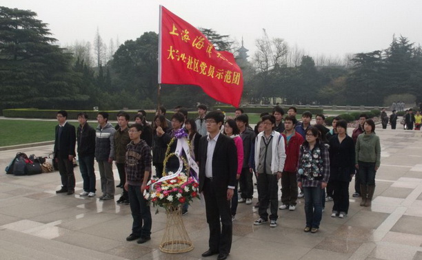 在迎接中国共产党建党九十周年之际,4月2日,我校社区党员示范团组织45名学生党员干部赴龙华烈士陵园进行祭扫,共同缅怀先烈。