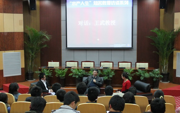 4月6日晚18:00,上海海洋大学行政楼137会场座无虚席,不时响起一阵阵热情的掌声、欢笑声,两个小时之中,没有一位同学中途离场,不断有同学悄悄加入,这就是水产与生命学院“水产人生”知名教授访谈活动的现场。首期访谈嘉宾为我院一级教授、全国优秀科技工作者、农业部“三农“模范人物王武老师,09、10级水产养殖、水族科学与技术、园林等专业的本科生到场聆听。水产与生命学院党委副书记林海悦老师出席,并做“水产人生”知名教授访谈系列活动动员讲话。