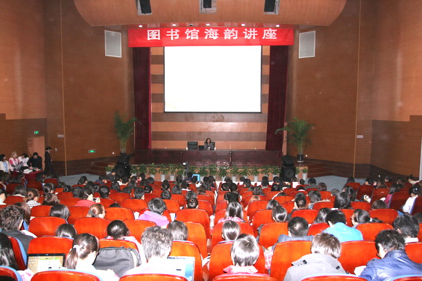 4月12日下午1点,离正式报告还有近半个小时,图文104室报告厅又已是座无虚席,甚至连后面过道上也站了不少学生。原来是不少师生慕名前来聆听有“ 现代女巫”之称的星象学者、塔罗解读师吴璧人女士的“用生命写故事最圆满”讲座。此次海韵讲座也是第六届“读书•文化节”名家讲座之一,报告会由图书馆直属支部书记郭亚贞主持。