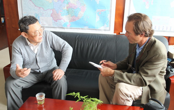 在长达两小时的访谈过程中,Joel Bourne就水产养殖在中国的改革,水产养殖业在中国农村经济和食品安全中扮演的角色,鲤鱼(carps)、非洲鲫鱼(tilapia)和鲷鱼(sea breams)遗传基因的改善对于此类鱼类在生产和健康方面的提高有多大帮助,在中国和世界实现一个可持序发展的水产养殖业会遇到怎样的挑战,水产养殖业在提高发展中国家(例如南亚和非洲)的食品安全中扮演的角色等问题请教了李思发教授,李教授一一作了解答,并且建议Joel Bourne到松江去实地考察一下鱼塘的情况。