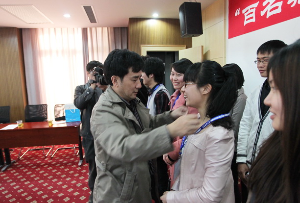 学生代表贺妍博在发言中感谢学校提供这样一个与教授们交流的机会,并表示将以百分百的努力去做好这项工作,以自己最大的热情和信心去展现教授们的风采,为海大人做出一部隆重的记录片。