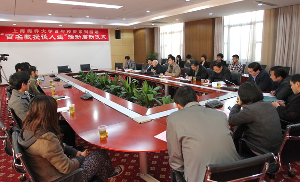 4月12日下午,上海海洋大学百年校庆系列活动——“百名教授谈人生”访谈活动启动仪式在行政楼104会议室举行。退休教授代表、在职教授代表、退休校级领导代表、全体参与采访学生及相关职能部门负责人参加会议。校党委副书记、副校长黄晞建出席会议。启动仪式由宣传部长江卫平主持。