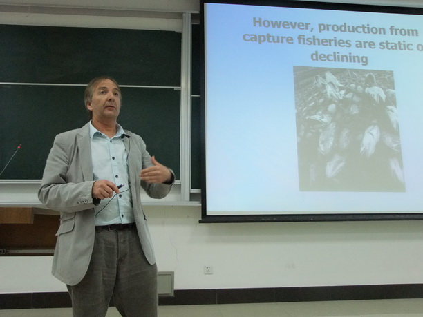 Gavin教授为我校200多名水产养殖学科的研究生上水产养殖前沿课程