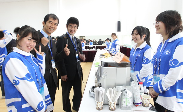 伴着浓浓的咖啡香,来宾对志愿者的服务交口称赞