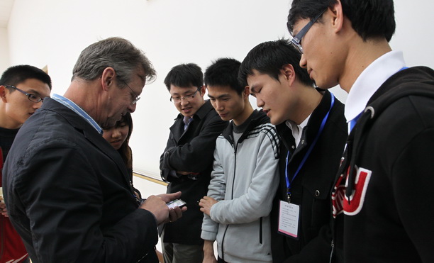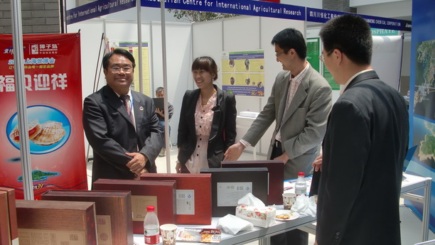 黄硕琳副校长视察会展况与獐子岛公司参会人员交谈