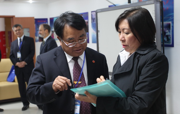 开幕式前夕,亚洲水产学会主席Ida Siason女士与黄硕琳副校长协调事务