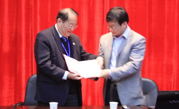 潘校长为王剑英先生颁发兼职教授聘任证书