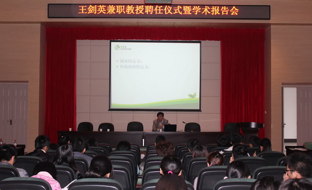 随后,王剑英教授为在座师生做了青年学生与科技创业的报告。王剑英教授讲述了自己挽救濒临破产企业、寻找创业机会和使自己的创业公司发展壮大的经历。王剑英教授以自身的经验,向师生介绍了创业需要的素质和条件,鼓励学生博览群书、丰富知识、开拓视野,积极实践、积累经验,为创业做好初步的准备。此外创业需要精心的策划和顽强的意志、需要坚持不懈的努力和坚定不移的决心,并要求学生根据自身条件选择就业或创业。王剑英先生为深圳市绿微康生物工程有限公司董事长兼总经理。1985年毕业于河北大学生物系微生物与生物化学专业,1985年起在中国科学院石家庄农业现代化研究所从事鱼类营养研究,1994年获得亚洲理工学院(AIT)硕士学位。2010年公司开始与我校接触交流,2011年3月潘迎捷校长携水产与生命学院党委书记张登沥访问绿微康公司,并与公司签署校企合作框架协议,确立了合作交流机制。2011年公司在我校设立上海海洋大学绿微康——杨毅奖学金,鼓励学生学习成才。