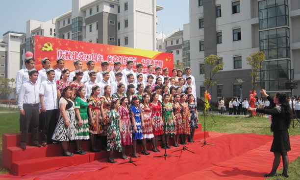 开幕式后举行了精彩的“唱红歌 歌颂党”合唱比赛,由九个学院和新疆学员组成的10个参赛队一一登台亮相,他们整齐的着装,饱满的精神,嘹亮的歌声,将合唱气氛不断推向高潮。新疆学员带来的《爱国奉献》、《新疆亚克西》征服所有评委,获得比赛一等奖,人文、爱恩学院党员示范队分别获得二等奖,经管、食品、外语学院党员示范队分别获得三等奖。