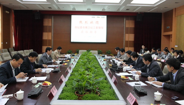 4月28日下午,市纪委副书记徐文雄和市教卫纪工委副书记许荣华一行到我校调研指导党务公开试点工作,校党委书记虞丽娟,校党委副书记吴嘉敏,校党务公开工作小组和办公室成员参加了会议。会议由市纪委副书记徐文雄主持。