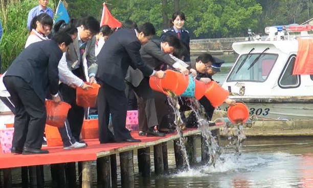 近日,我校吴嘉敏副书记应邀出席了上海市农委和青浦区联合主办的以“增殖水生生物资源,维护水域生态平衡”为主题的2011年淀山湖水生生物增殖放流活动。水产与生命学院王丽卿教授等随同参加。