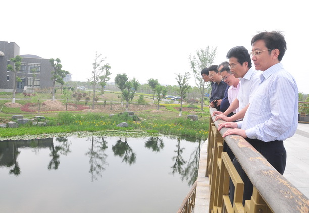 徐源智书记一行在观景平台俯瞰校园的水生环境