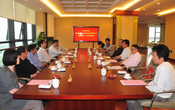 5月12日,新疆喀什师范学院党委书记徐源智一行在上海市援疆工作前方指挥部社会组平辉组长的陪同下访问我校,随行的还有市教委、上海师范大学校办的有关领导。校党委副书记、副校长黄晞建、副校长封金章亲切接见了来宾。