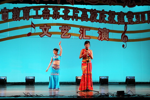 由上海市教育工会主办的东北片高校庆祝建党九十周年“上海教师永远跟党走”文艺汇演5月13日下午在上海财经大学礼堂隆重举行。来自东北片23所高校1000多名教师欢聚一堂,满怀豪情以歌声、舞蹈、戏曲、朗诵等丰富多彩的文艺表演形式歌颂祖国、歌颂伟大的中国共产党,拉开了上海教师庆祝建党九十周年文艺汇演纪念活动的序幕。