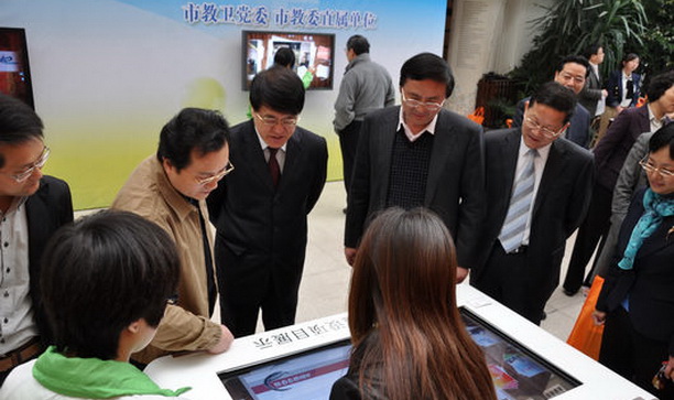 此次精神文明大会为了更好地展示2009-2010年度教卫党委系统文明创建的成果,市教卫党委系统文明办在会场外布置的7块智能电子显示屏,利用多媒体的形式立体化展示了教卫党委系统在文明创建、特色品牌活动以及师德、文化、世博等方面的内容。市教卫党委书记李宣海及上海市教育委员会主任薛明扬在观看我校特色品牌展示时对我校文明创建工作中凝练的五大品牌:积极拓展合作平台为学校发展争得新机遇、以易班为阵地打造师生网上精神家园、发扬传统拓展大学社会服务功能、发挥学科优势为世博食品安全保驾护航、心理健康和思政课教育建立联动机制合力育人等给予了充分肯定。