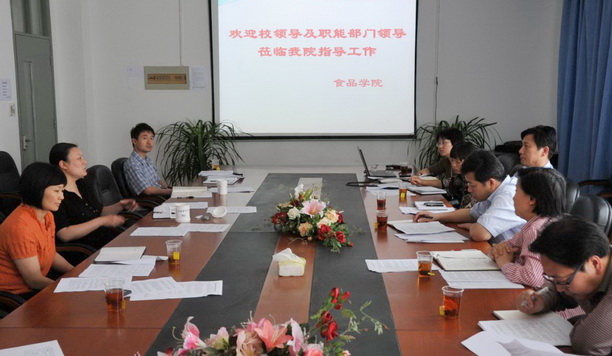 2011年5月19日上午,校党委书记虞丽娟、校党委副书记吴嘉敏率校各职能部门领导到食品学院,与学院领导班子共商推进校院二级管理的具体步骤。