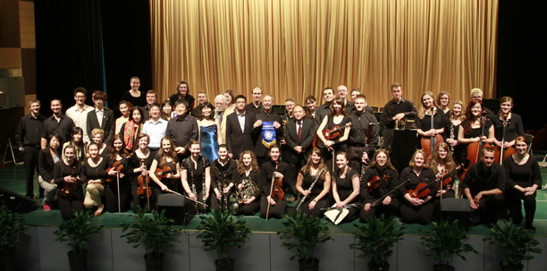 历时一个多小时的音乐盛宴在一首堪称经典的C大调,钢琴、小提琴、大提琴三重协奏曲中结束,三位资深艺术家深情投入的演奏和身后乐团默契的配合让现场观众无不陶醉在这古典大师们的杰作中不能自已。观众们为交响乐团的精湛表演而连声称赞,掌声雷动全场。最后,斐麦克博士与校团委书记夏雅敏代表两校互赠校旗和礼物。作为我校迎百年校庆“高雅艺术进校园”系列活动之一,旨在丰富大学生课余生活,营造多彩的校园文化的同时,此次演出更促进了我校与国际院校间的艺术交流。