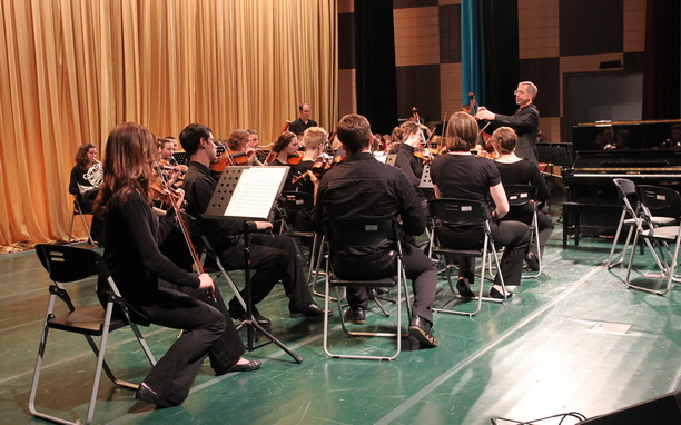 5月21日晚,美国犹他韦伯州立大学交响乐团在我校大学生活动中心报告厅进行专场音乐会,吸引了近六百多名师生到场聆听。美国犹他中华中心主席许璧志先生、美国犹他州韦伯州立大学交响乐团指挥斐麦克博士(Dr.Michael palumbo)、副校长程裕东教授出席了本次音乐会。