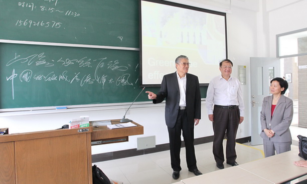 在校党委书记虞丽娟、校长潘迎捷陪同下,李铁映同志一行乘游览车饶有兴趣地参观了学校校园。在“勤朴忠实”校训墙前,李铁映同志简要了解了我校发展历史,对海洋大学百年来的曲折发展给予肯定。“上海必须下海,中国必须成为海洋大国”,这是李铁映同志对我校学子的殷切寄语。他十分关心在校大学生的学习、生活情况。在课间休息时,他走进我校第二教学楼教室,正在做上学准备的工程学院同学们见到李铁映同志一行,纷纷起立鼓掌欢迎。李铁映同志非常高兴地与学生们交谈起来,并勉励同学们刻苦学习,他拿起粉笔在黑板上写下“上海必须下海,中国必须成为海洋大国”的寄语,同学们纷纷表示要牢记领导教诲,好好学习。在我校学生公寓,李铁映同志一行参观了学生活动室、学生寝室等设施,对学校为学子们提供的周到服务表示赞赏。