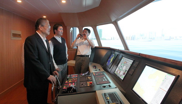 李铁映同志一行非常关注海洋事业发展,在参观我校远洋渔业展示厅、海洋遥感实验室时,他详细了解了中国远洋渔业发展现状及我校海洋遥感科技成果应用情况,他勉励我校科研工作者抓住机遇,为中国海洋事业发展做出更大贡献。视察中,李铁映同志一行还走进我校先进的航海模拟器实验室,在专业教师指导下,亲自体验了一回风浪中驾船远航,对航海模拟器营造出的逼真训练环境连声赞叹。