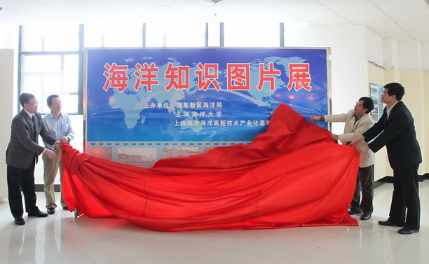 开幕式出席领导共同为“海洋知识图片展”揭牌