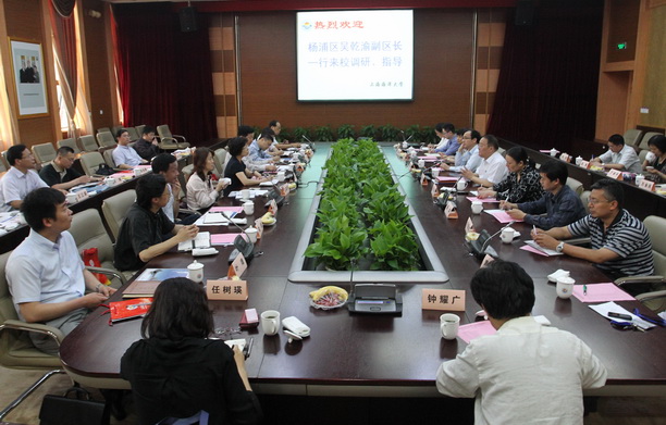 6月8日下午,杨浦区人民政府吴乾渝副区长率领区府办、区食药监局、区工商局、区质监局、区商务委及多个街道的领导同志等一行十九人,来我校调研食品安全监管事宜。吴副区长一行首先来到食品学院,在王锡昌院长、陈江华书记陪同下参观了学院食品生物技术实验室和食品营养风味及感官实验室;随后客人兴致勃勃地参观了校史馆并在潘迎捷校长陪同下,登上图文信息中心十二楼俯瞰了校园全景。